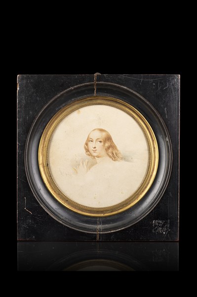 Lot 438 | Luigi Gandolfi "Ritratto di giovane" matita e acquerelli su carta tonda (d. mm 1
