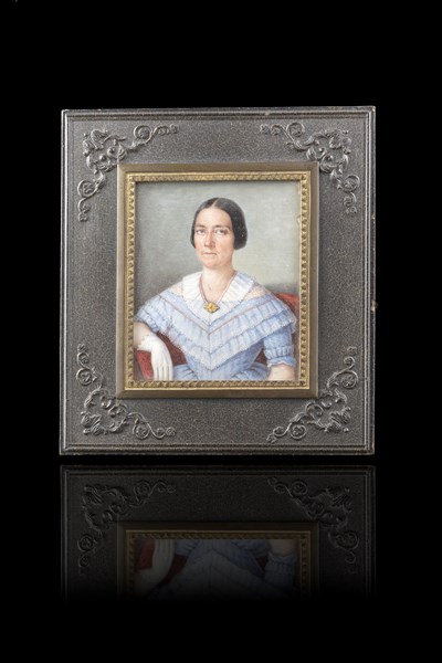 P. Nizzola (19th-century) "Portrait of a gentlewoman 1844" miniature on ivory (cm 8x6,5) Signed on the left. In frame (defects)
