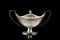 Salsiera biansata in vermeille a corpo liscio con bordure scanalate. Presa del coperchio a trottola, anse squadrate e stemma coronato inciso. Punzoni di Londra, 1797. Argentiere Solomon Hougham (cm 25x15) (g 400) (difetti)