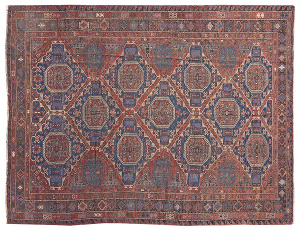 Tappeto Sumak, Caucaso, fine secolo XIX. Decoro con file di medaglioni romboida
