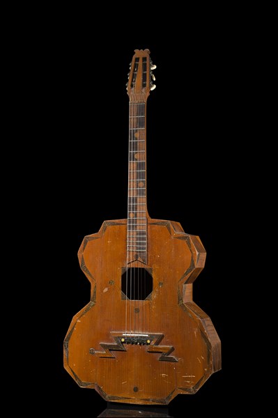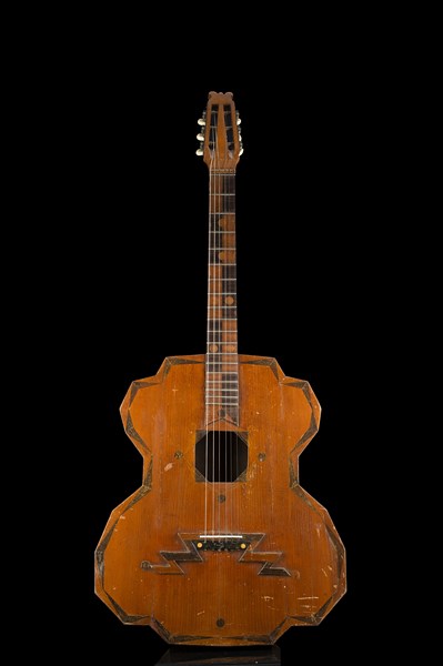Chitarra, Lombardia, metà secolo XX. Fondo in un legno tropicale della famiglia