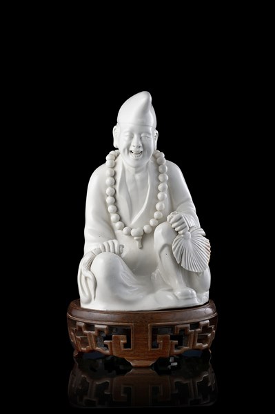 Figura di Jigong in porcellana blanc de chine, base in legno Cina, secolo XX P