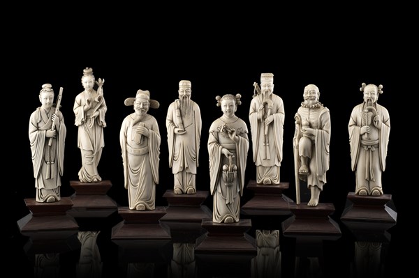 Lot 1062 | Gruppo di sculture in avorio raffiguranti gli "Otto Immortali", basi in legno d