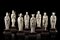 Gruppo di sculture in avorio raffiguranti gli "Otto Immortali", basi in legno di epoca posteriore