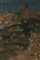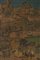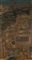 Due pannelli da parete dipinti con paesaggio montano con fiume e figure tra pad