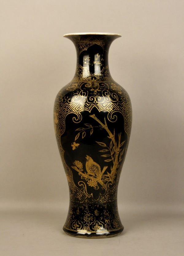 Lot 96 | Vaso in porcellana fondo nero con decorazioni in oro zecchino. Lievi difetti...