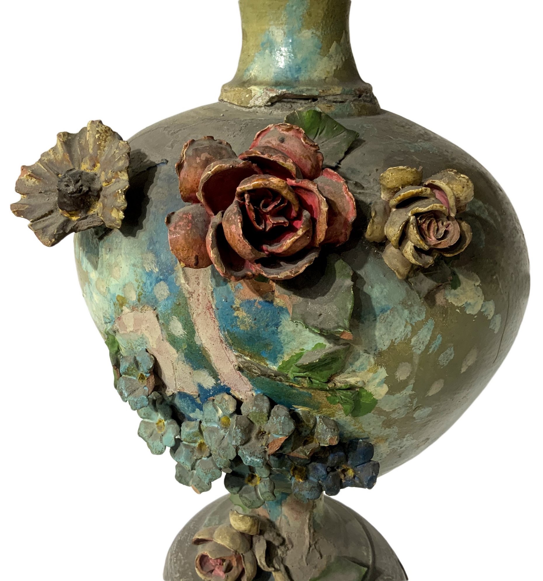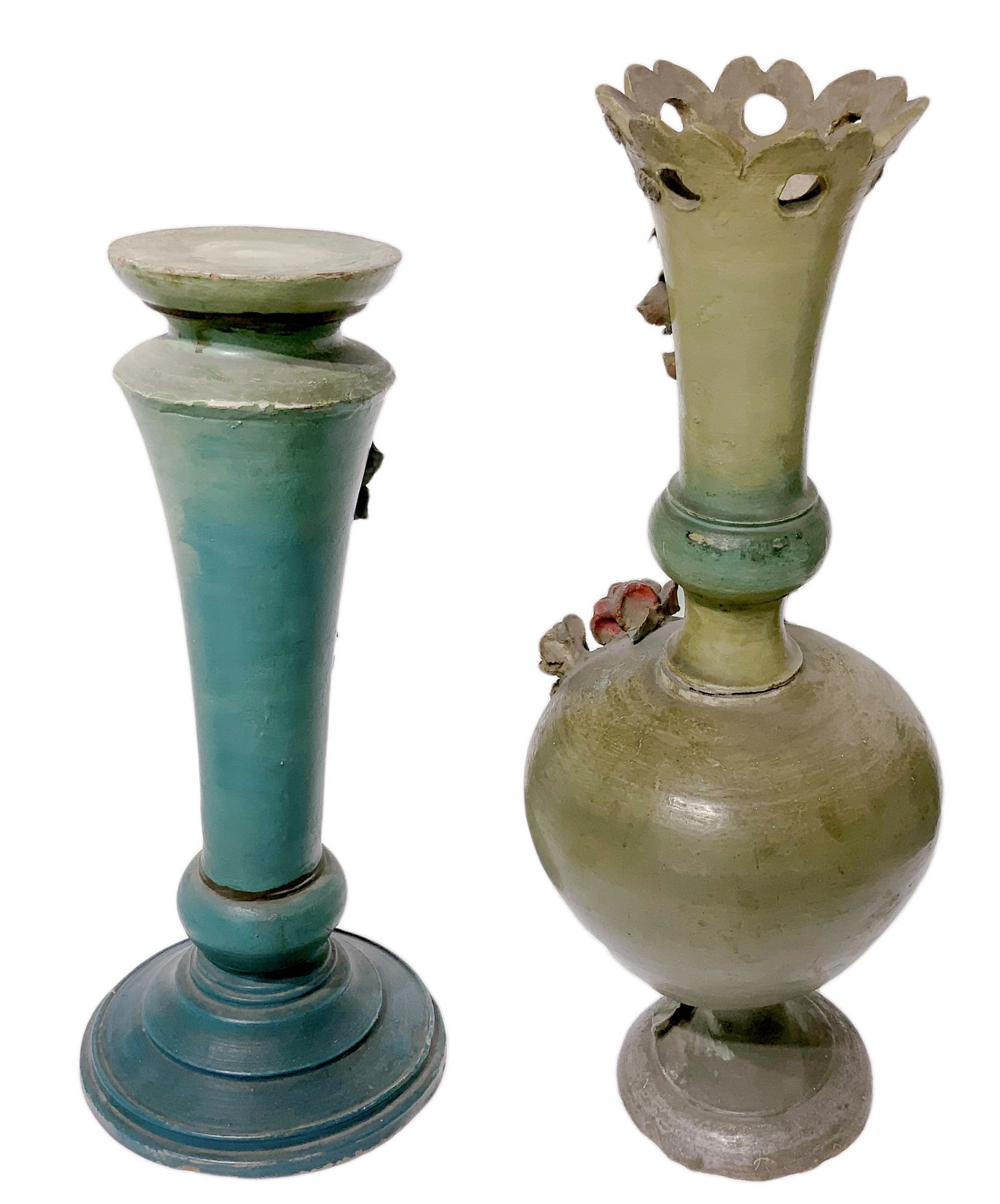 Coppia di vasi napoletani a due corpi, in cotto con decori floreali, secolo...