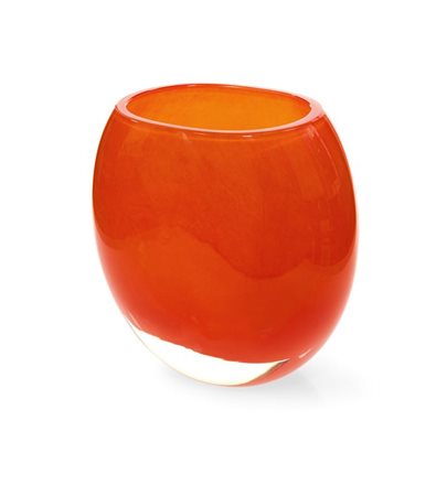 BAROVIER & TOSO Vaso in vetro sommerso arancione e cristallo- Firma incisa...