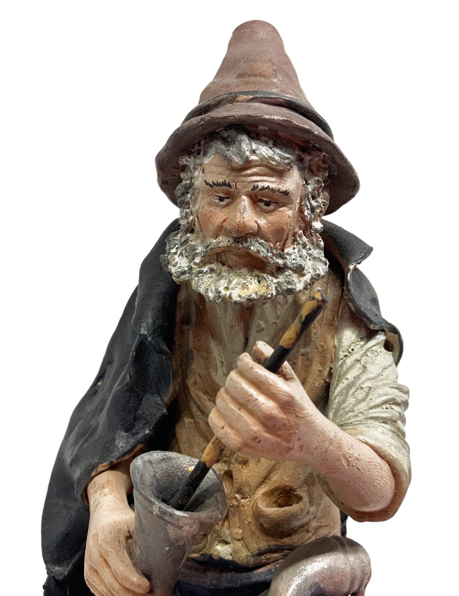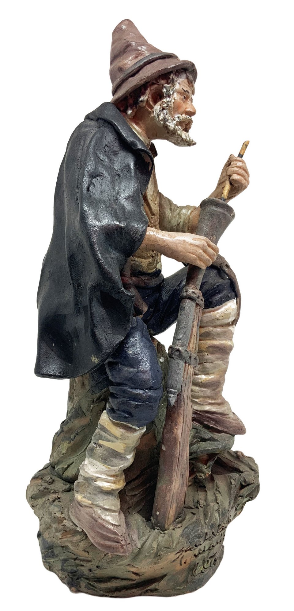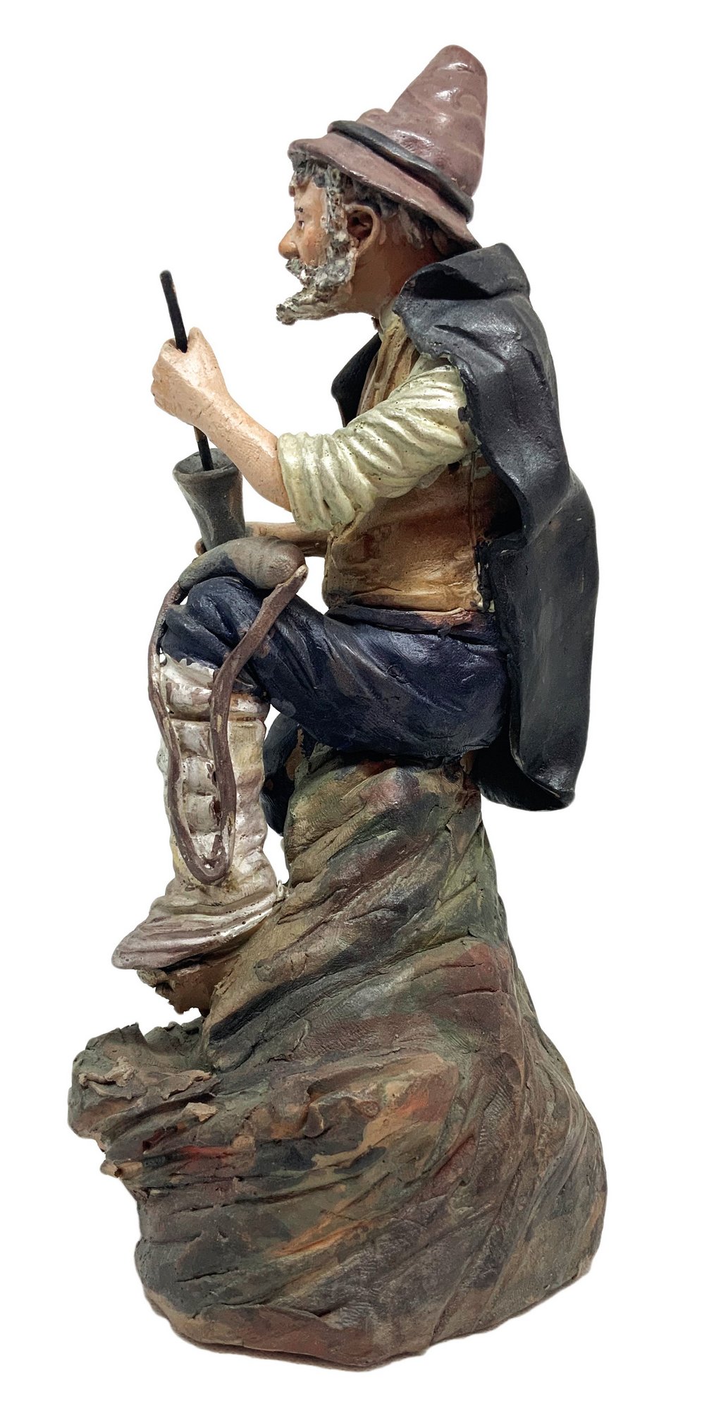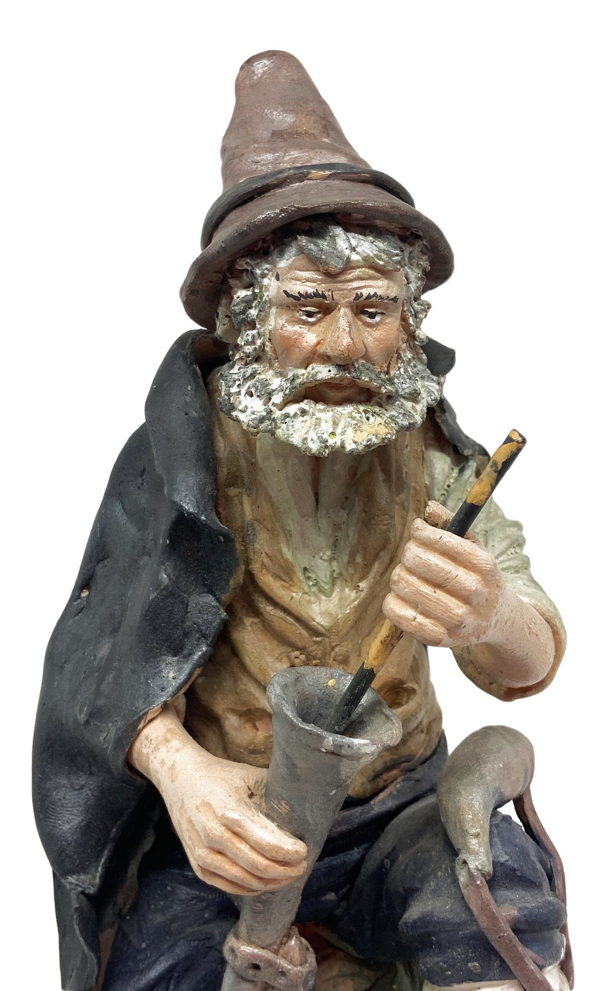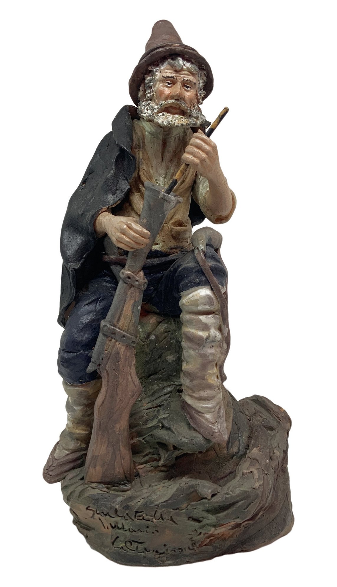 Statua in terracotta policroma di Caltagirone raffigurante brigante, XX secolo. H cm 24. Firmato Scarlatella Mario alla base.