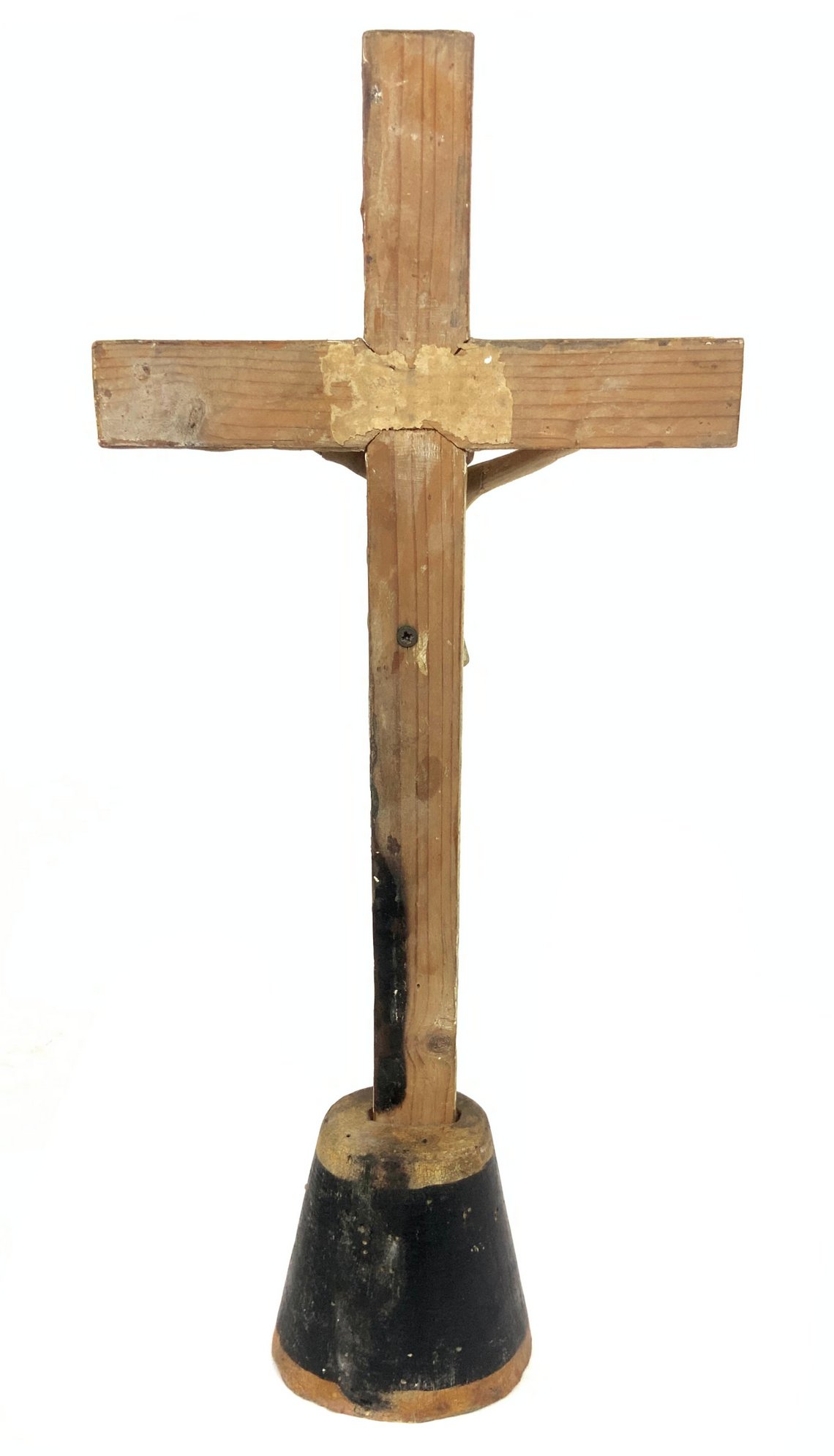 Crocifisso in legno su base raff. cuore di Gesù. Prima metà del XIX secolo....