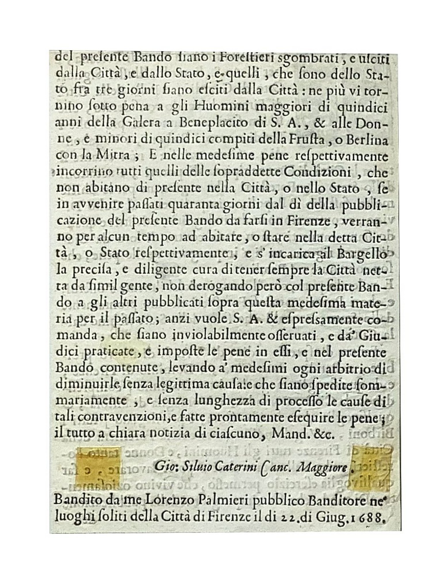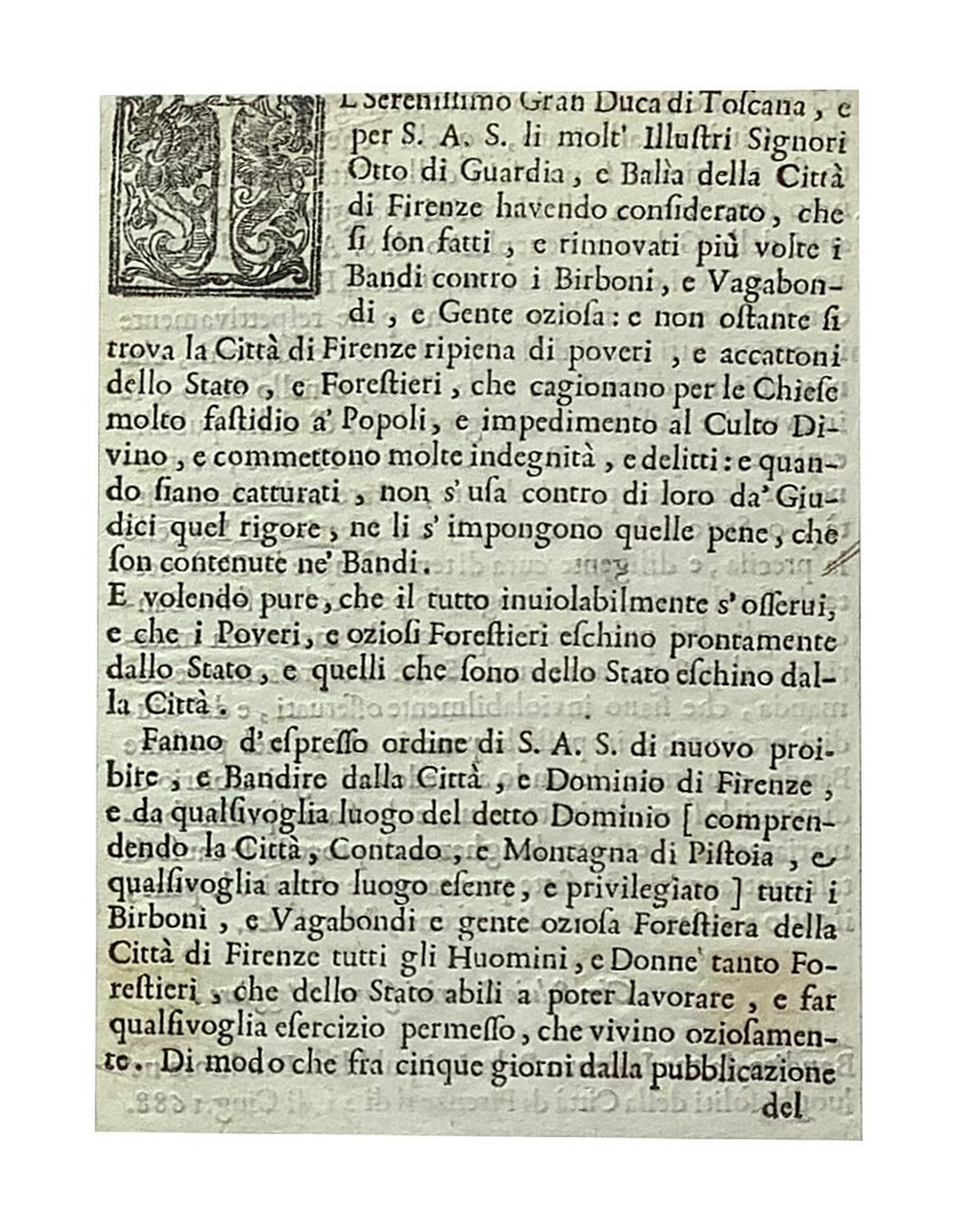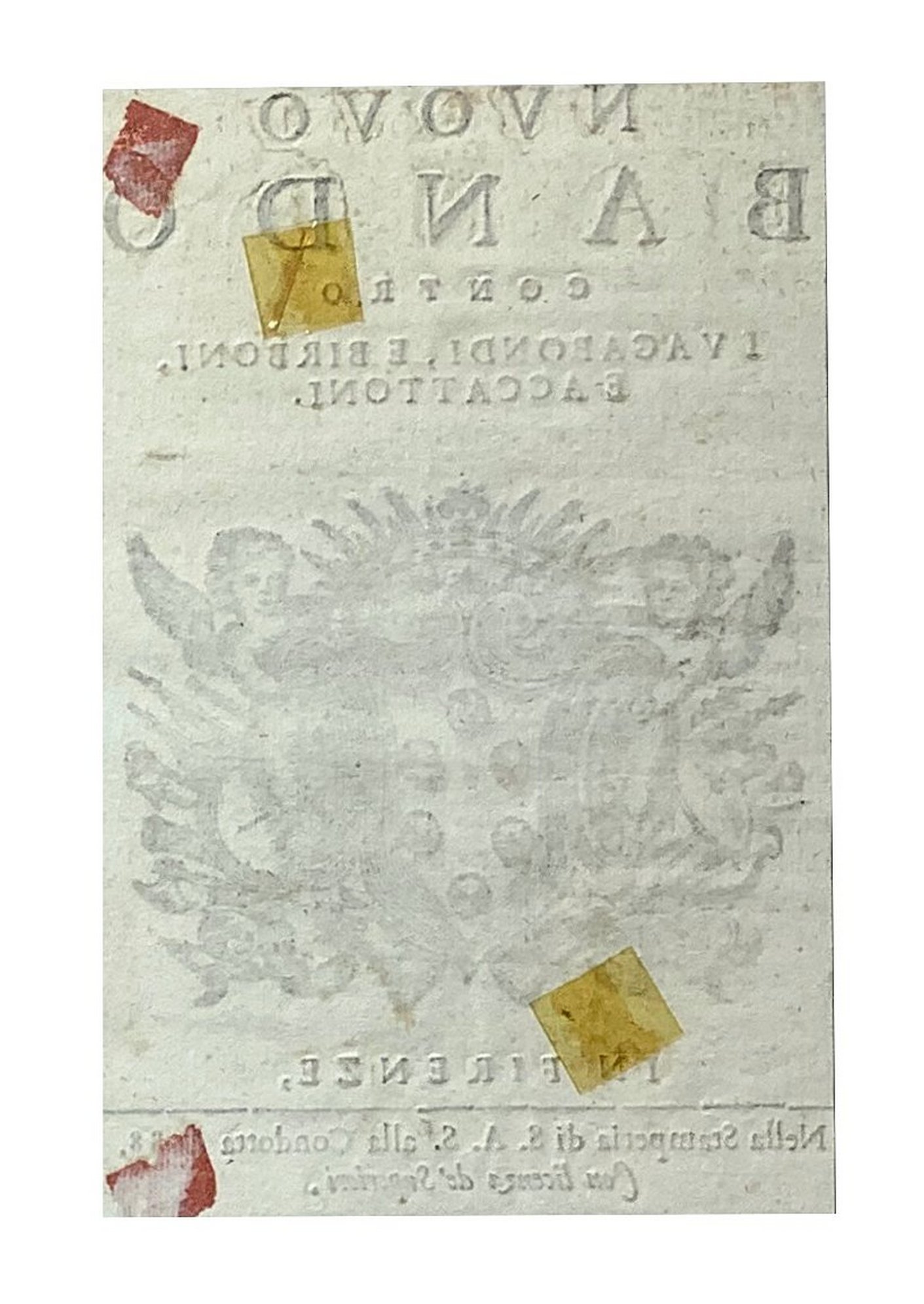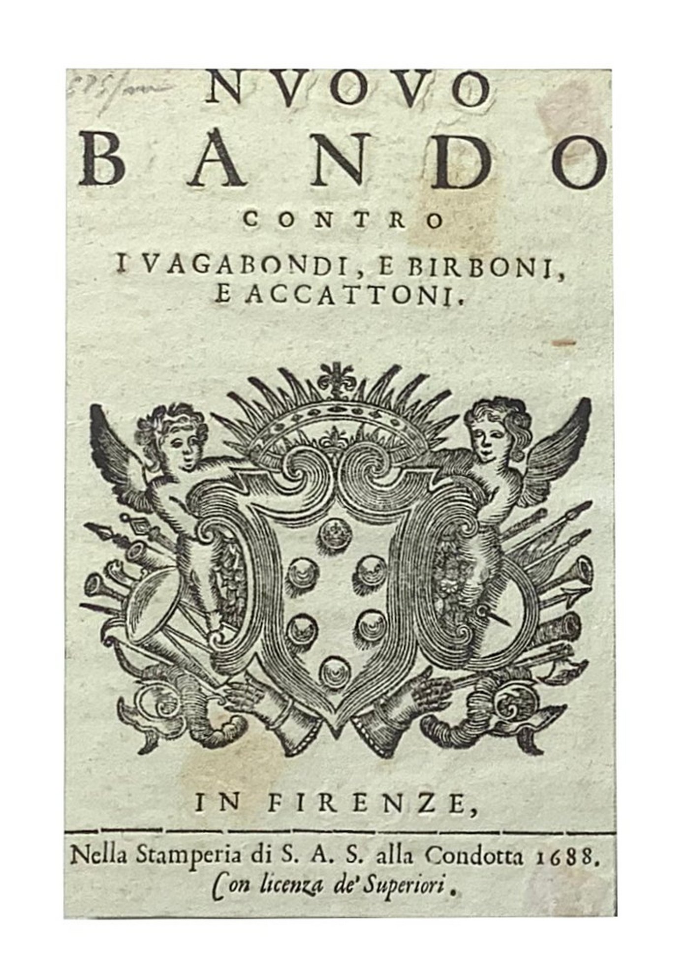 Stampa del nuovo bando contro i vagabondi e birboni e accattoni, 1688....