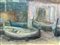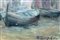 Dipinto ad olio su tavoletta raffigurante barche a secco ad Acitrezza, XX secolo. Cm 40x50. Firmato M. Torrisi Gaia in basso a destra.
