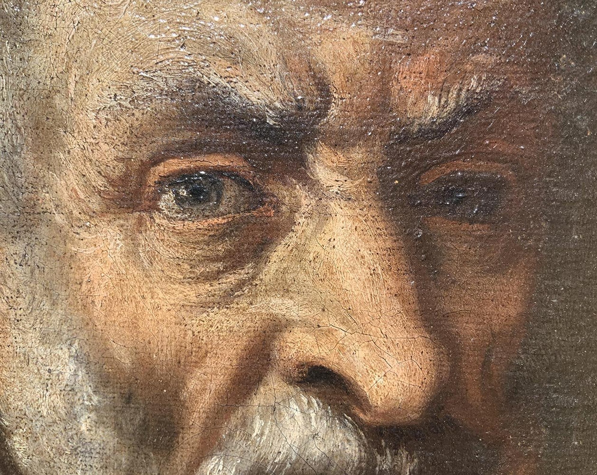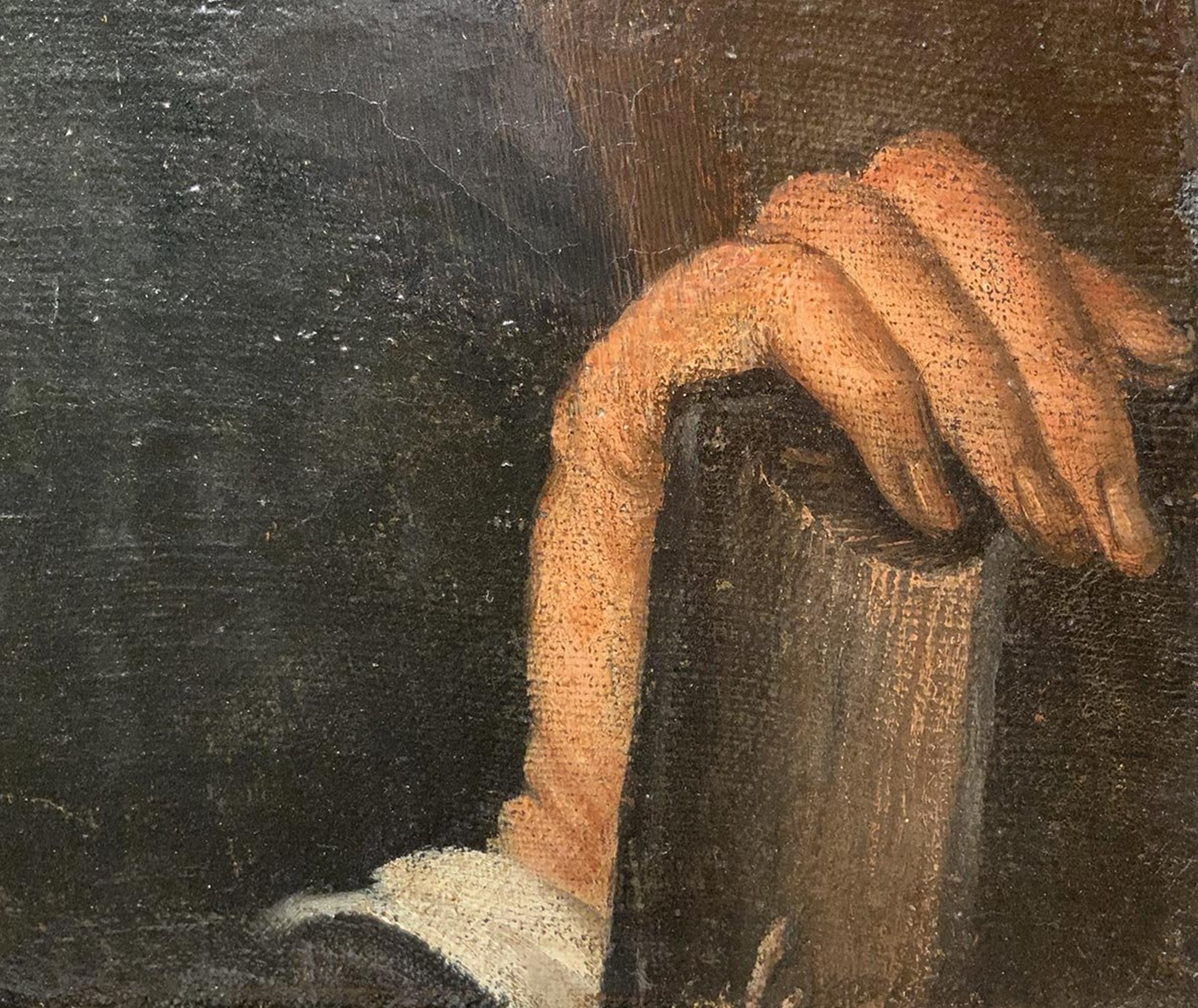 Dipinto ad olio su tela raffigurante uomo con barba con libro, Marco Antonio...