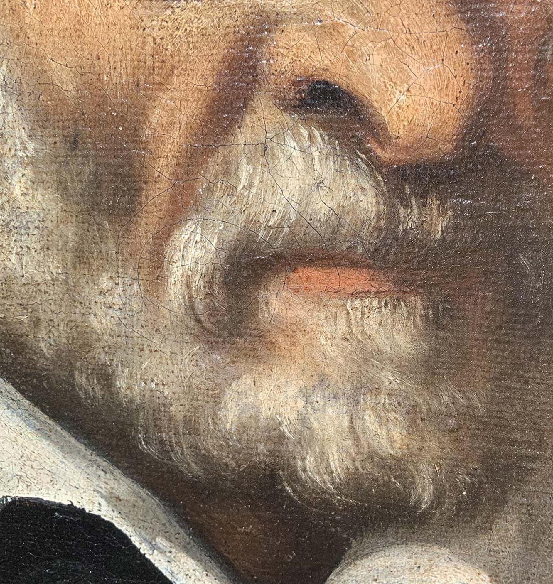 Dipinto ad olio su tela raffigurante uomo con barba con libro, Marco Antonio Bassetti (Verona 1586-1630), attrib. Cm 65x55, in cornice 85x75.