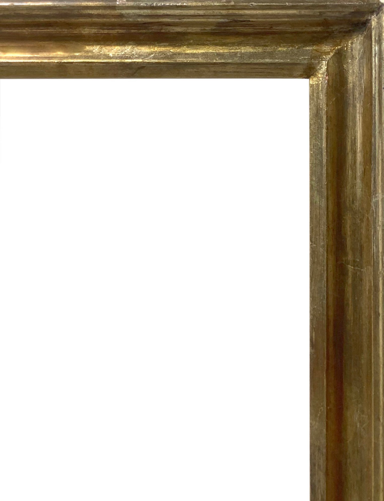 Cornice in legno a mezza canna dorata a foglia, in stile del XIX secolo. Misure esterne cm 118x97. Misure interne cm 108x88.