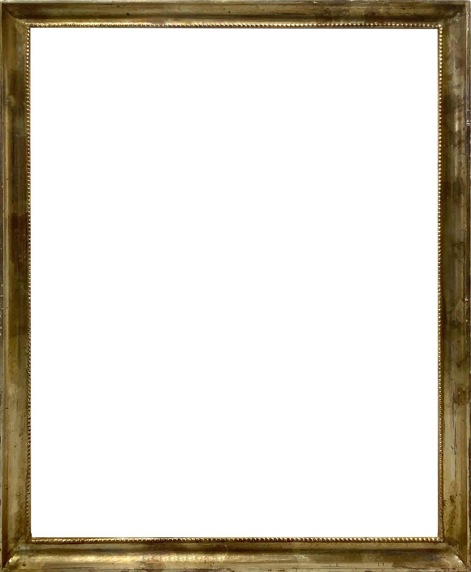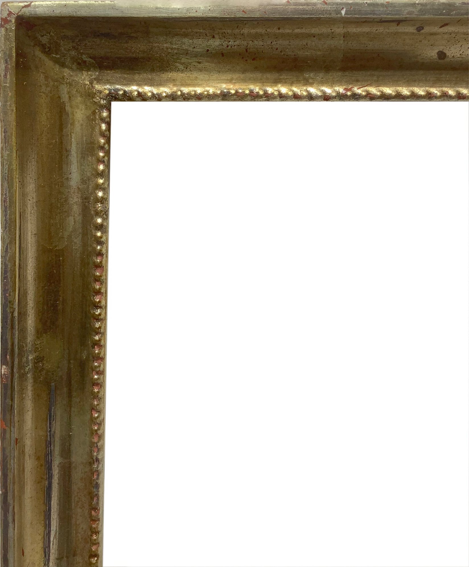 Cornice in legno a mezza canna dorata a foglia, in stile del XIX secolo. Misure esterne cm 86,5x66,5. Misure interne cm 78x58.