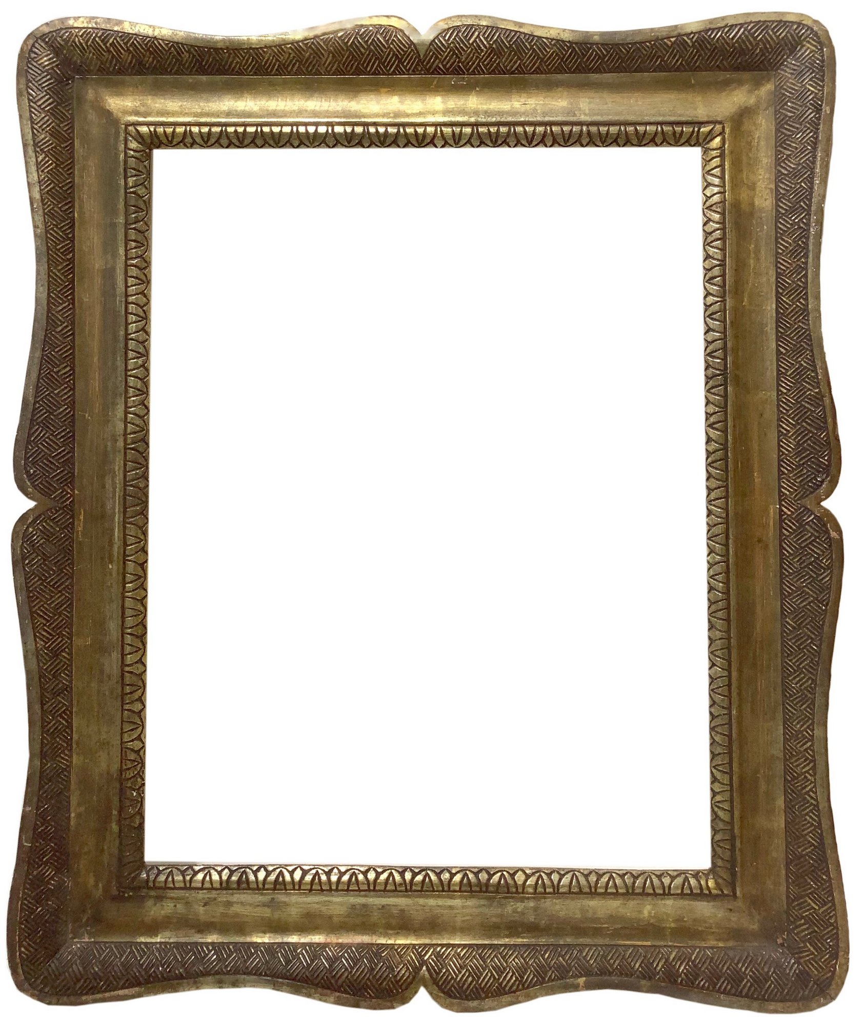 Cornice in legno a vassoio dorata a foglia, in stile del XIX secolo. Misure esterne cm 73x61. Misure interne cm 53x41.