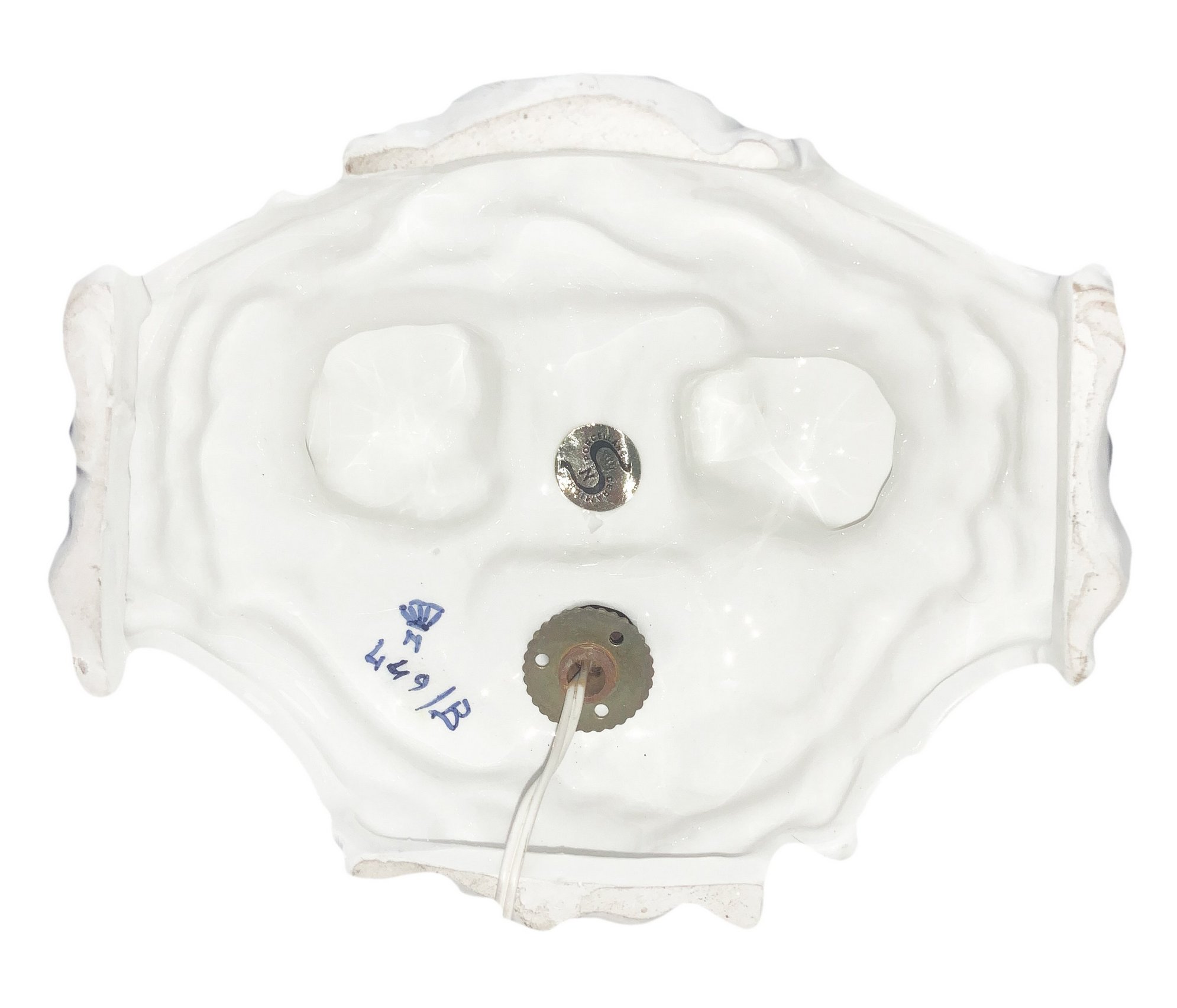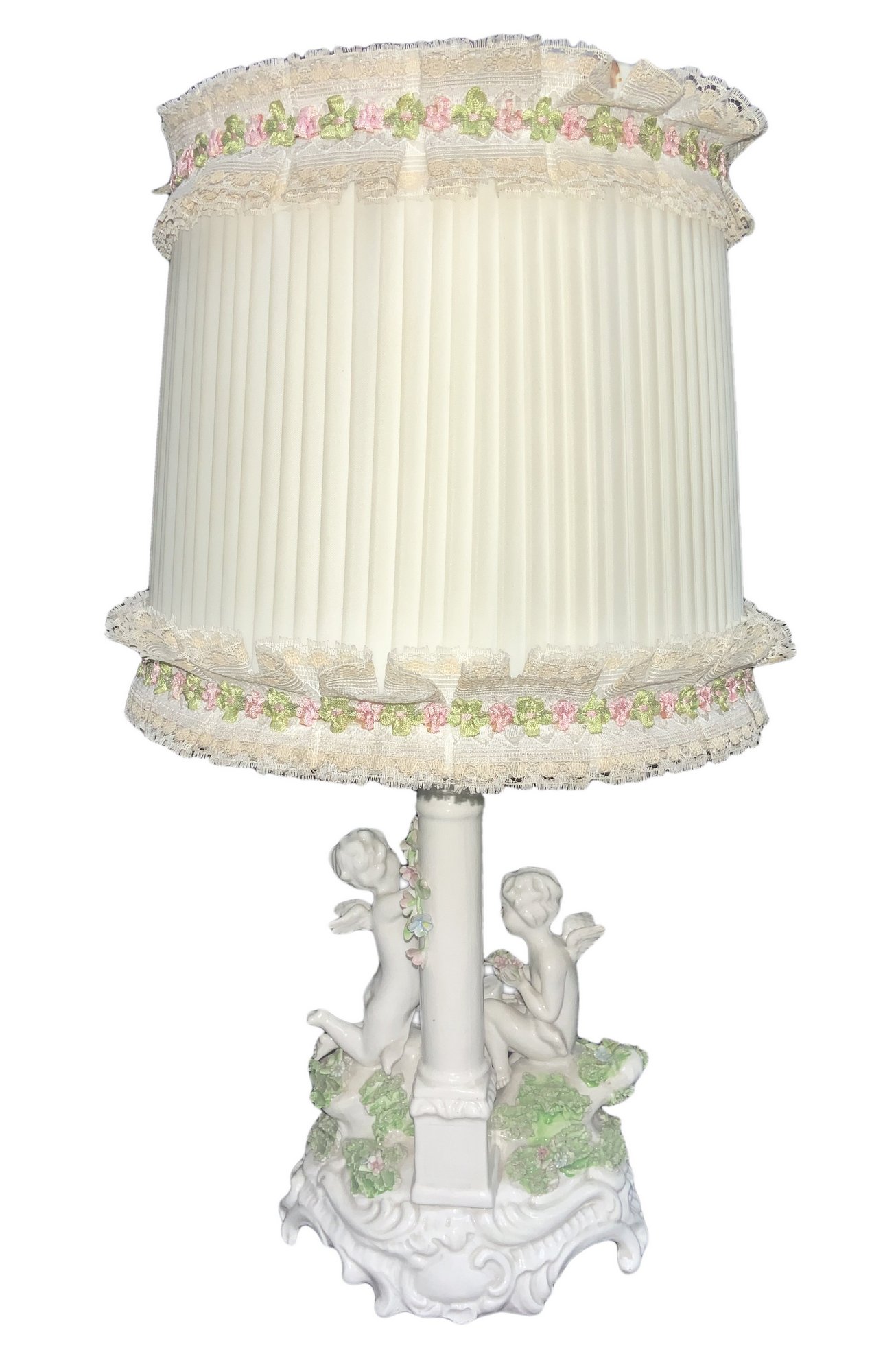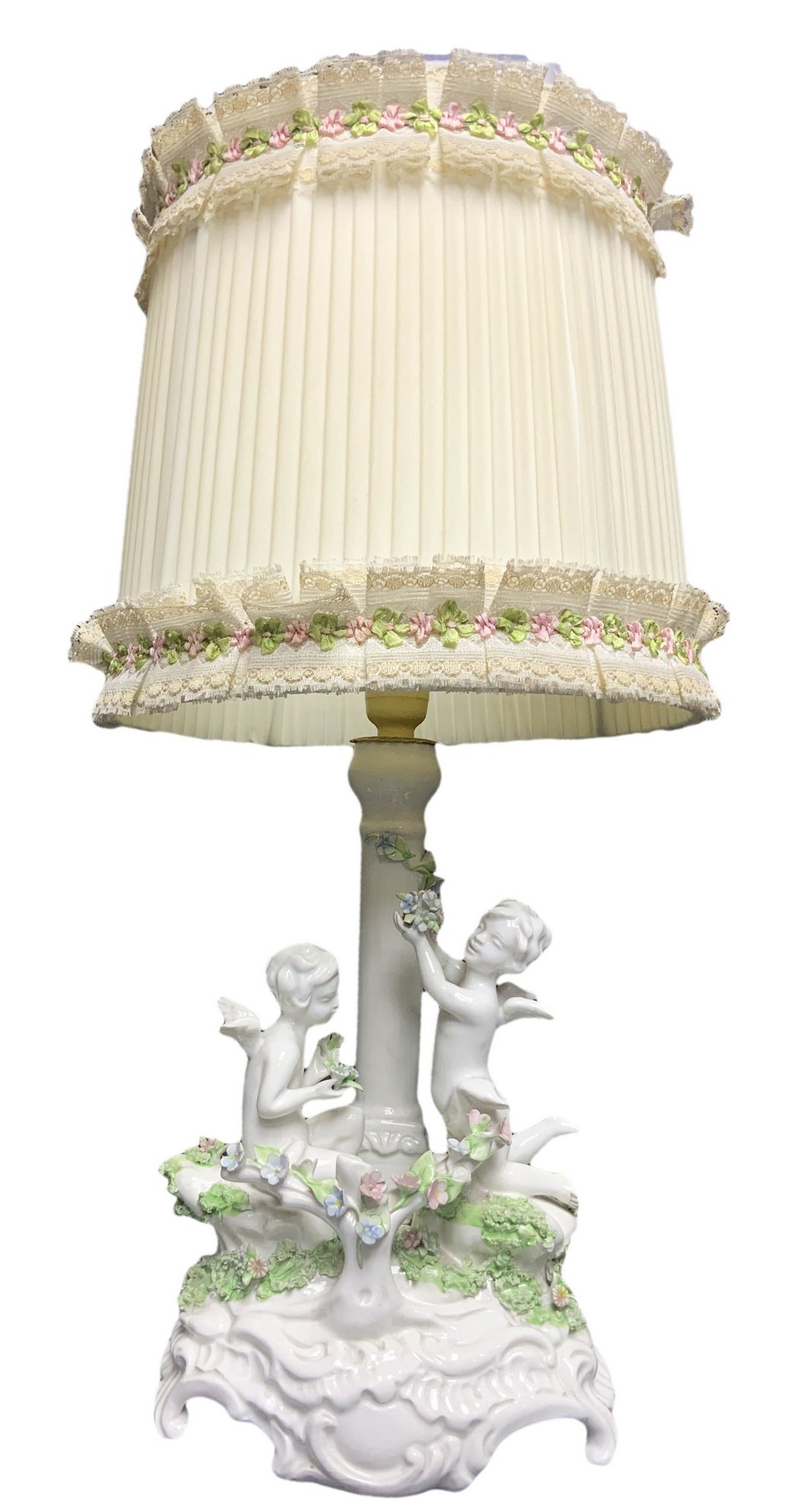 Abat jour in porcellana di Capodimonte con gioco di angioletti, XX secolo. H...