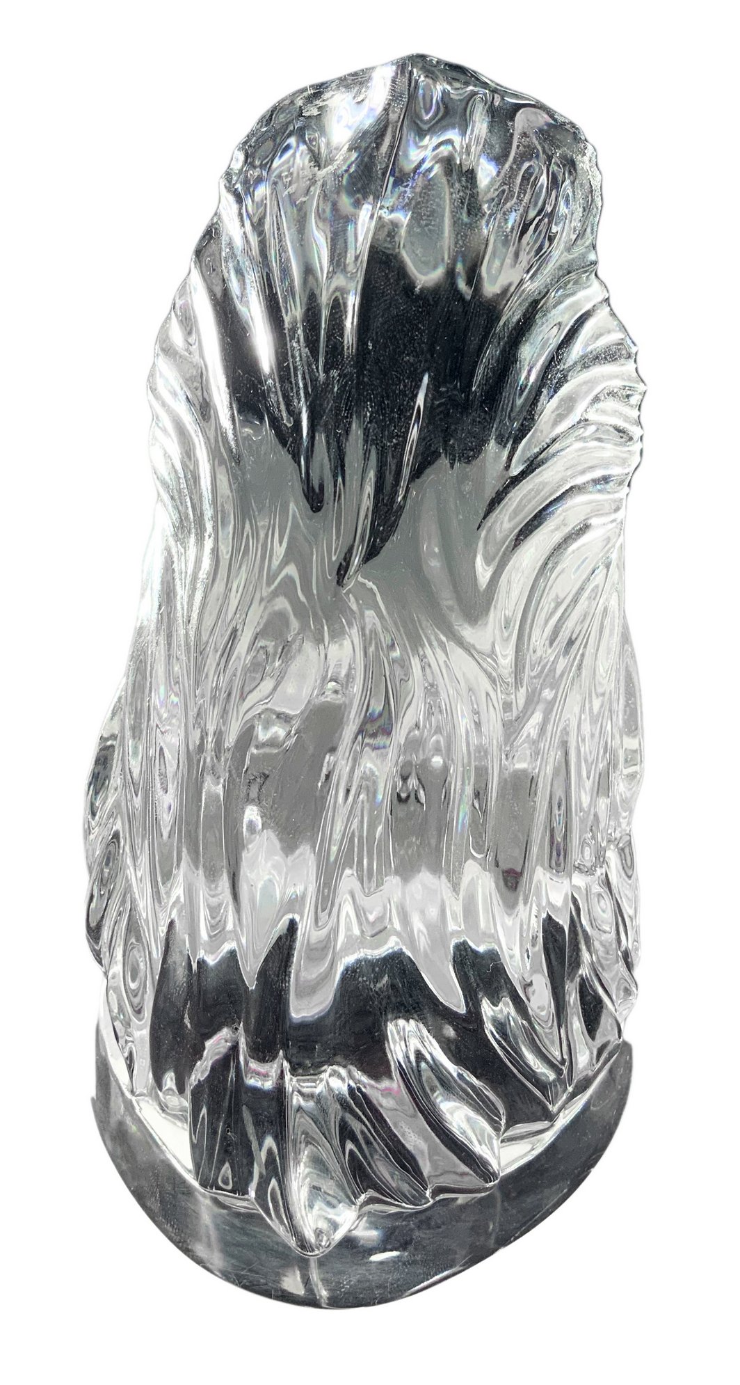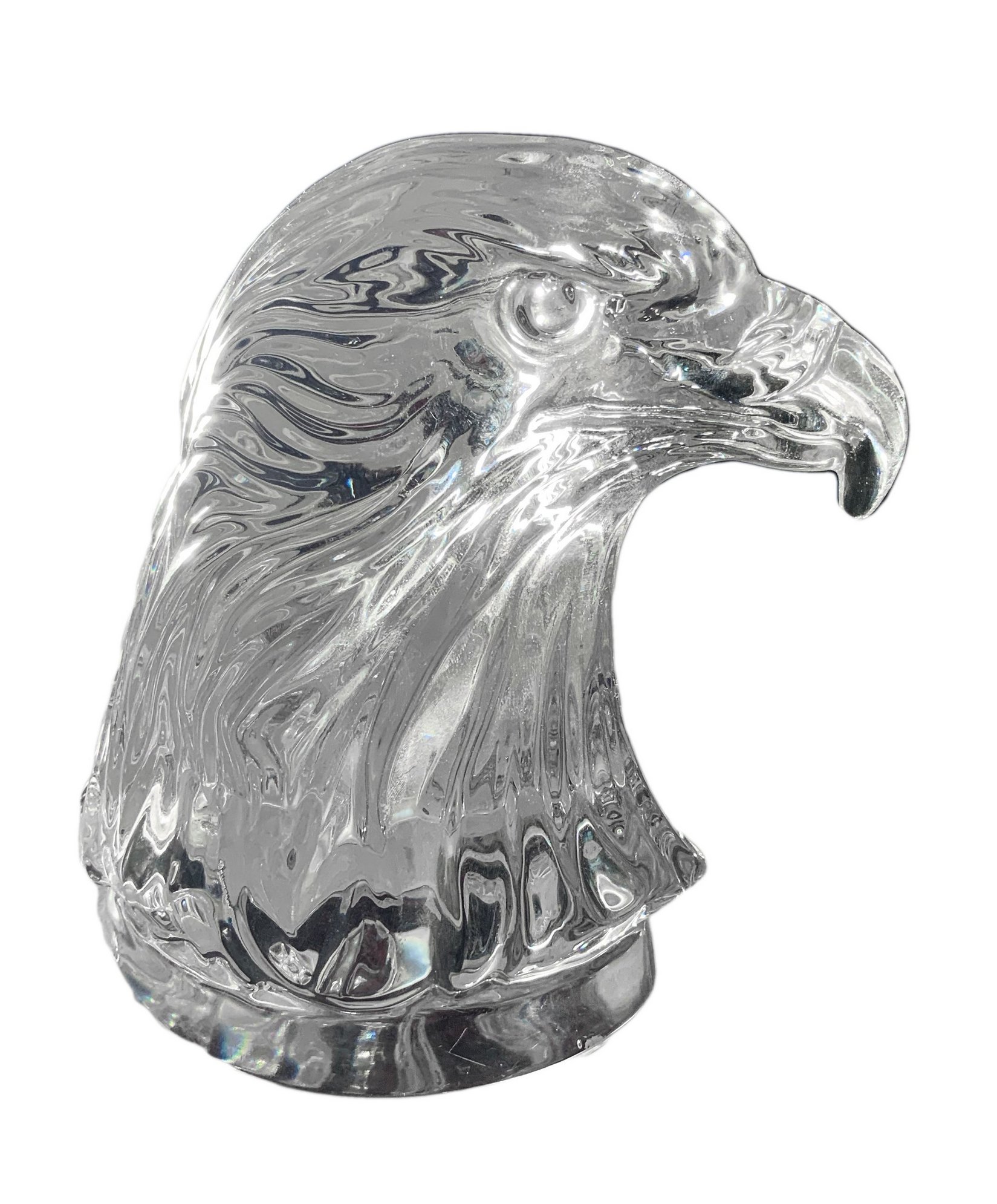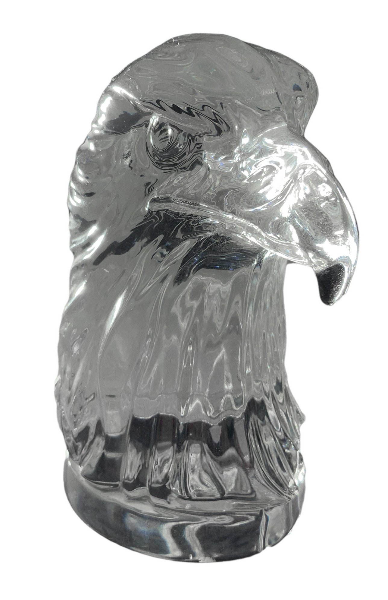 Scultura in cristallo raffigurante testa di aquila, XX secolo. H cm 15.