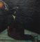 Dipinto ad olio su tela raffigurante Parca Cloto e ragazzo con candela, XVII secolo. Cm 61x80. Privo di cornice. L’opera è oralmente attribuita al pittore veneto Pietro della Vecchia (Vicenza, 1603 – Venezia 1678).