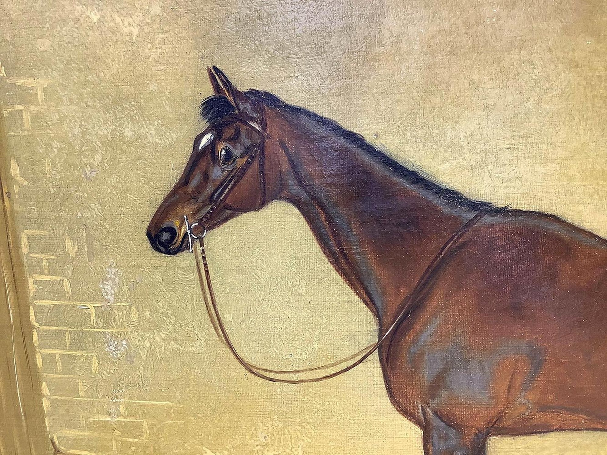 Dipinto ad olio su tela raffigurante cavallo, XIX secolo. Cm 46x61. Firmato in basso a destra J. C. Partridge 1877.