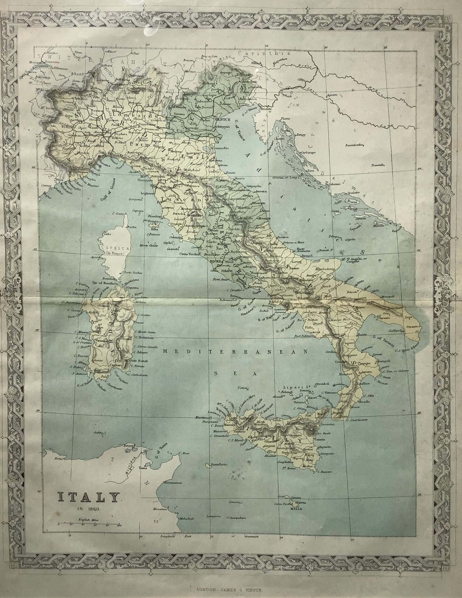 Italia, 1860 autore James S. Virtue, London. Cm 34x26. Con cornice di legno...