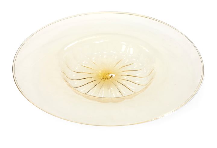 Grande piatto a fondo baccellato e larga tesa in vetro pagliesco.