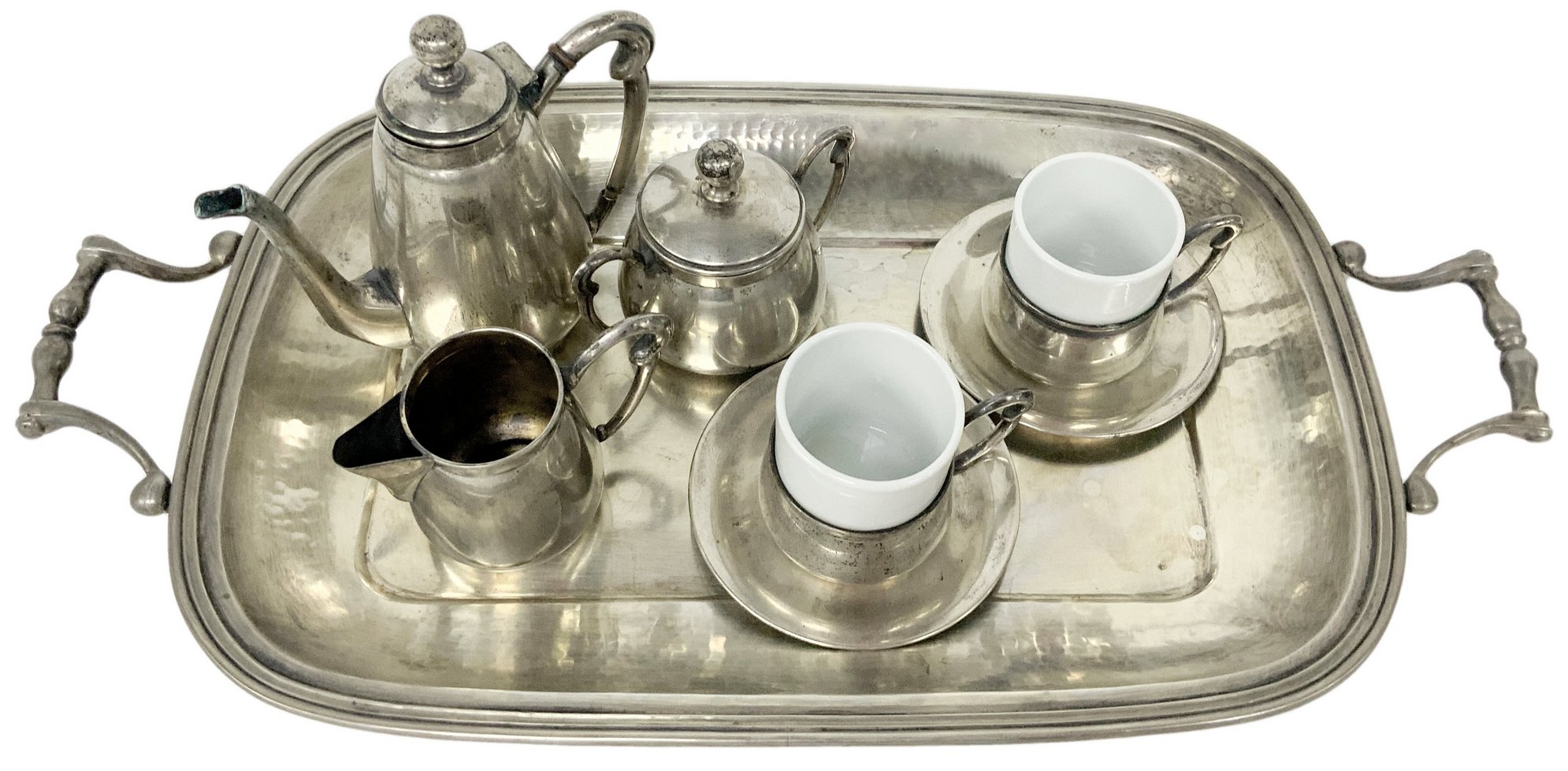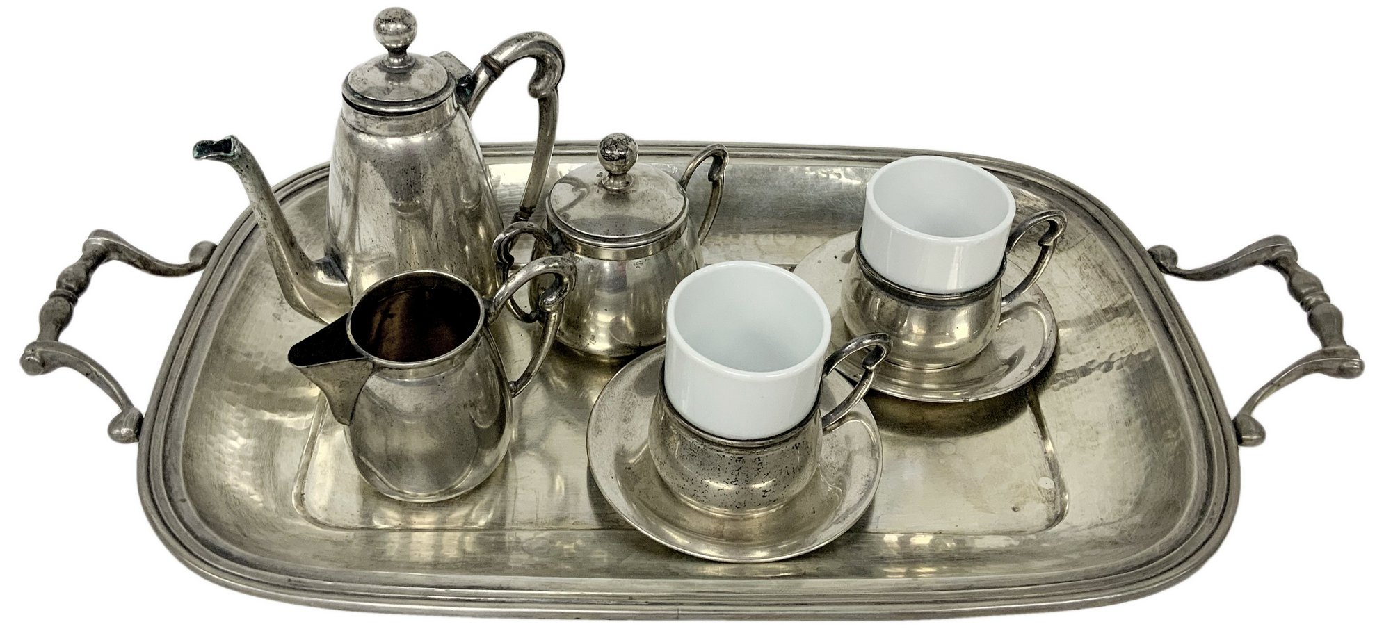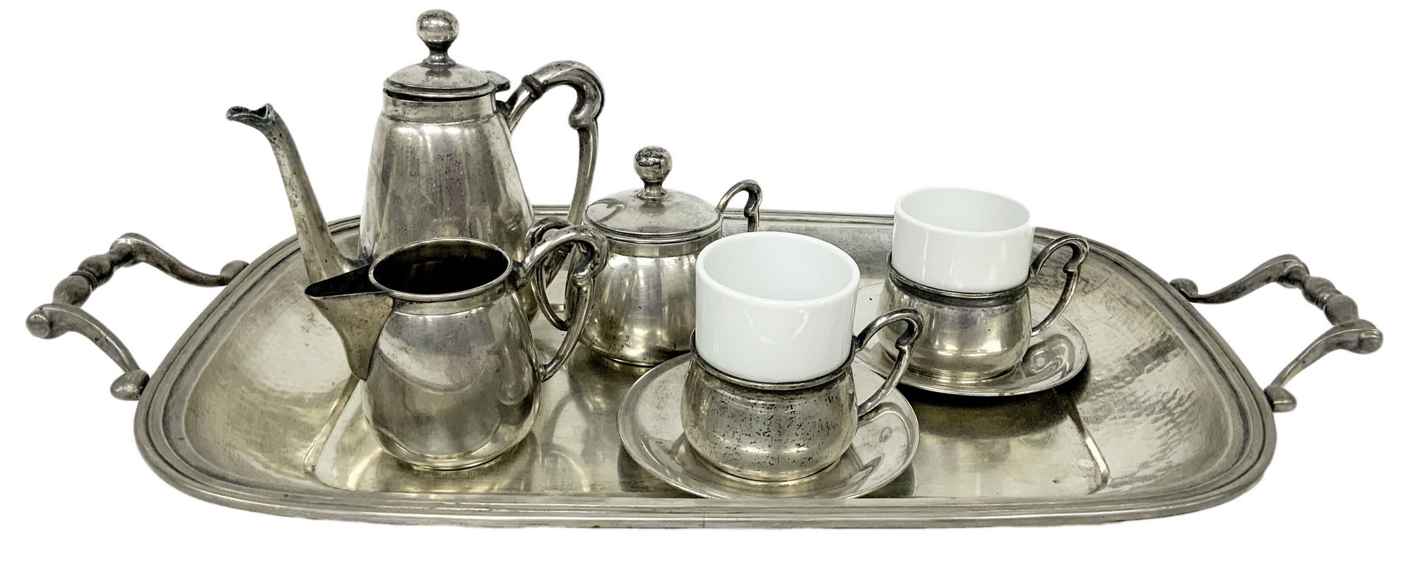 Servizio tête-à-tête da caffè in argento 800. Composto da: 1 Vassoio, 1...