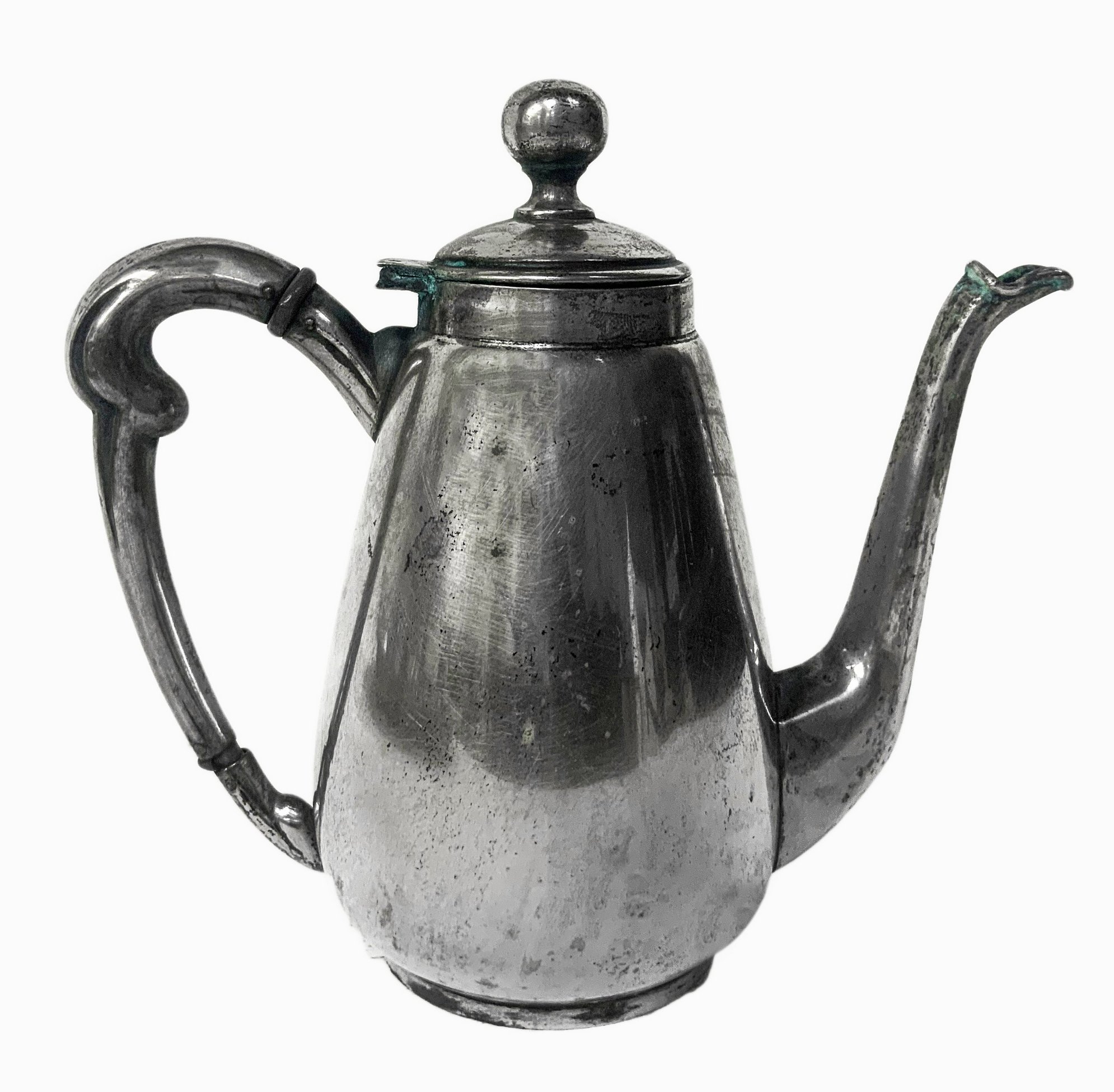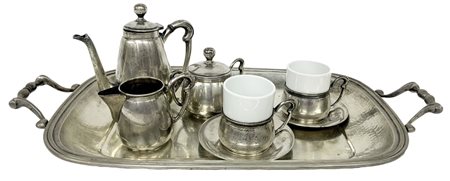 Servizio tête-à-tête da caffè in argento 800. Composto da: 1 Vassoio, 1 caffettiera, 1 zuccheriera, 1 lattiera, 2 tazzine. Peso Kg 1 ,5.