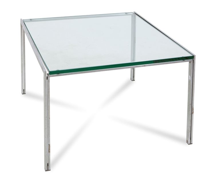 Tavolo da salotto in acciaio spazzolato cristallo.