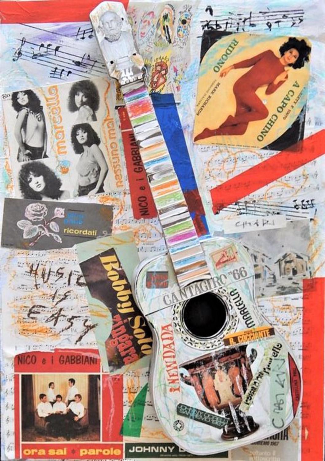 Giuseppe Chiari MUSIC IS EASY tecnica mista su tavola, cm 73x53 firma L'opera...