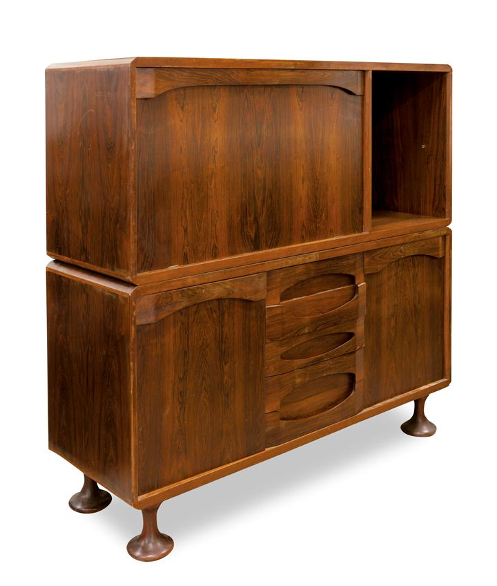 Mobile composto da due elementi sovrapposti impiallacciati in legno di palissandro ed un vano a giorno.