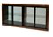 Vetrina da centro in legno di noce con ante in vetro fumé e telaio in mogano.