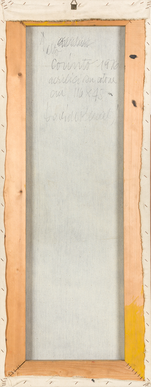 Firma, titolo, datazione, misure, tecnica e indicazioni per il posizionamento al retro