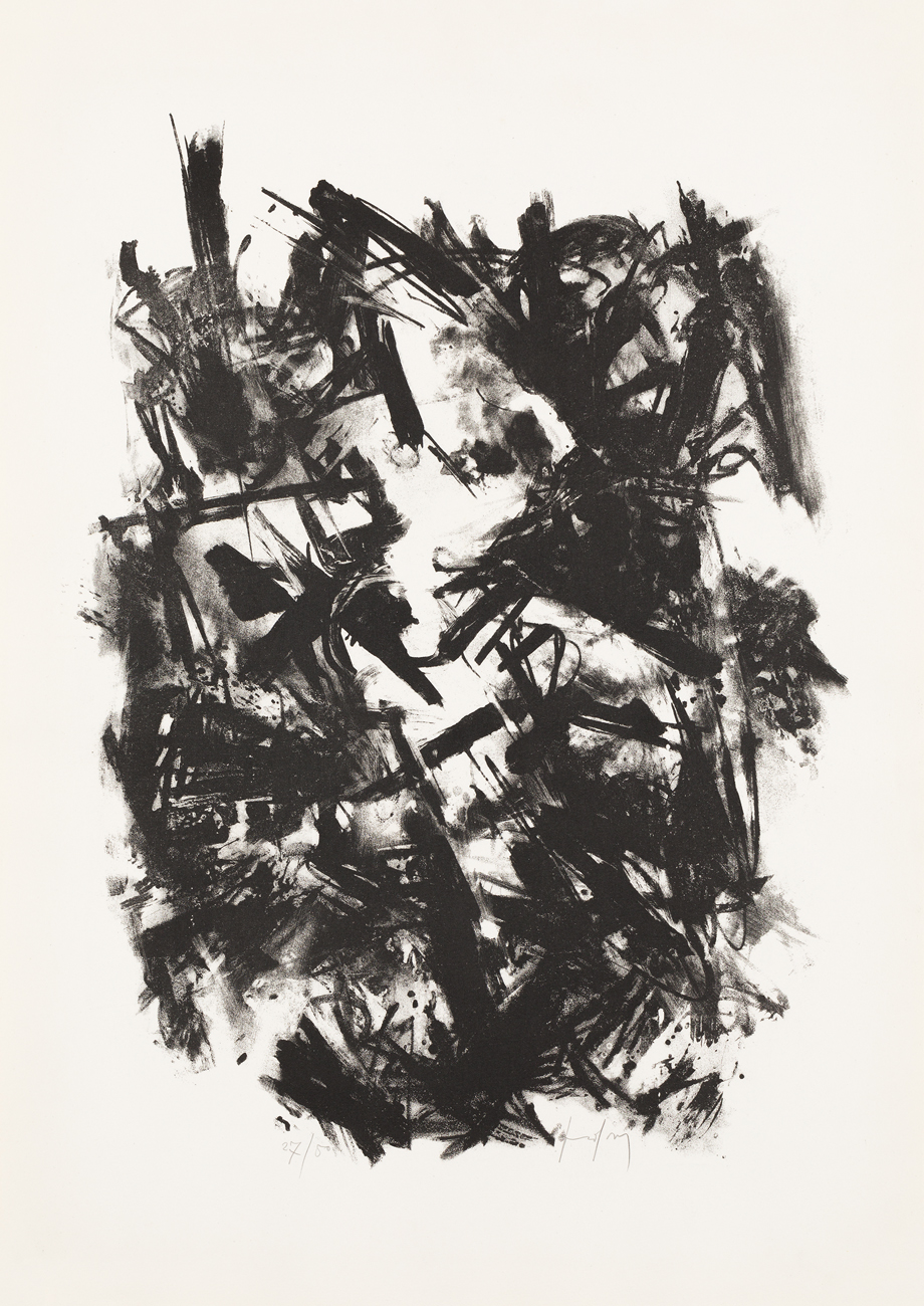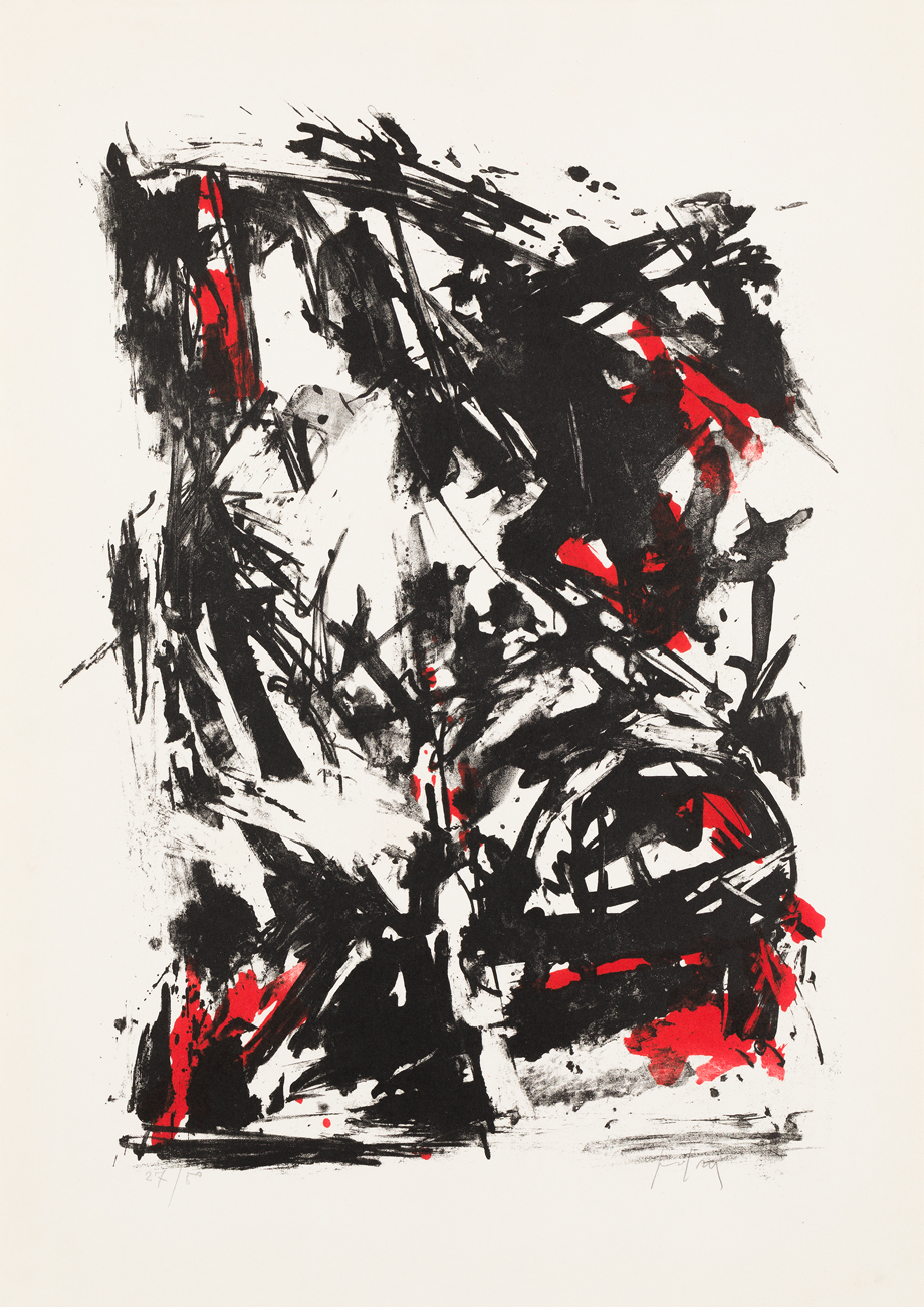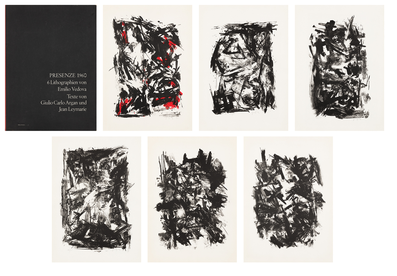 Cartella contenente testi di presentazione di Giulio Carlo Argan e Jean Leymarie e 6 litografie di Emilio Vedova, ciascuna recante firma e numerazione (Esemplari 27/50) a matita al fronte