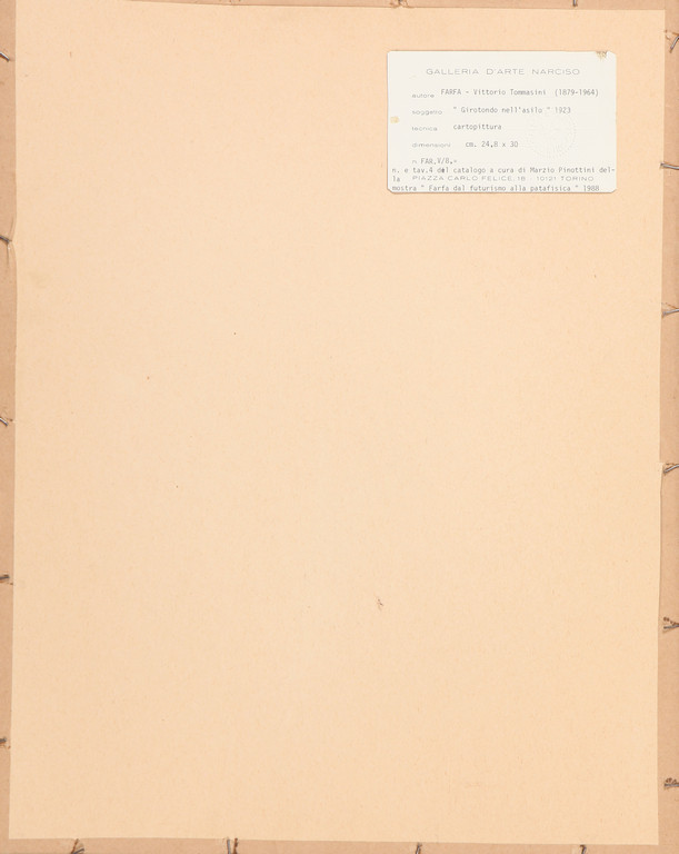 on the reverse: label of Galleria d'Arte Narciso Turin