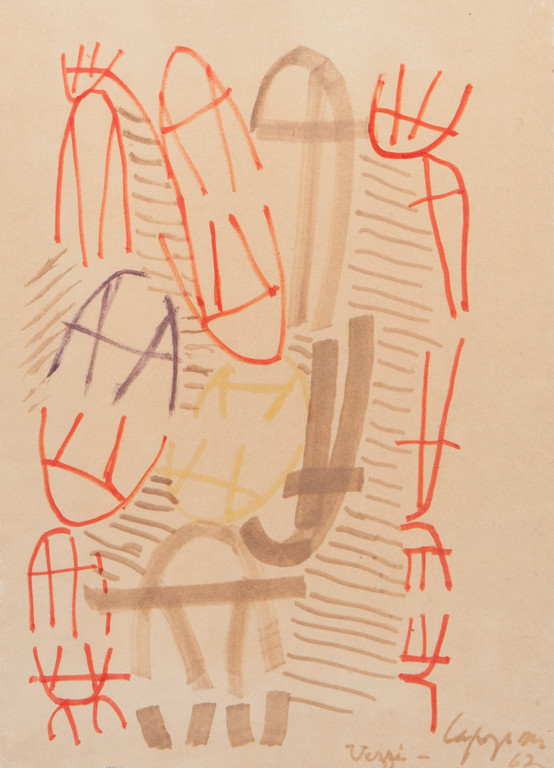 bibliografia: Capogrossi. Gouaches Collages Disegni Catalogo Ragionato dell'opera su carta di Giuseppe Capogrossi a cura di Guglielmo Capogrossi testo di Giulio Carlo Argan Electa N.561