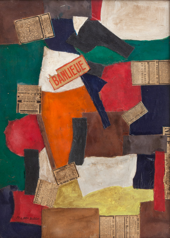 oil and collage on board 26 77x19 29 in