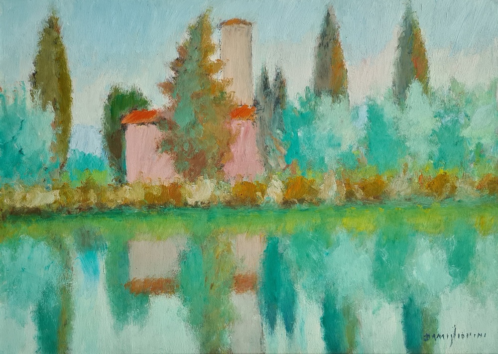 Olio su faesite 50x70 cm; firma in basso a destra.