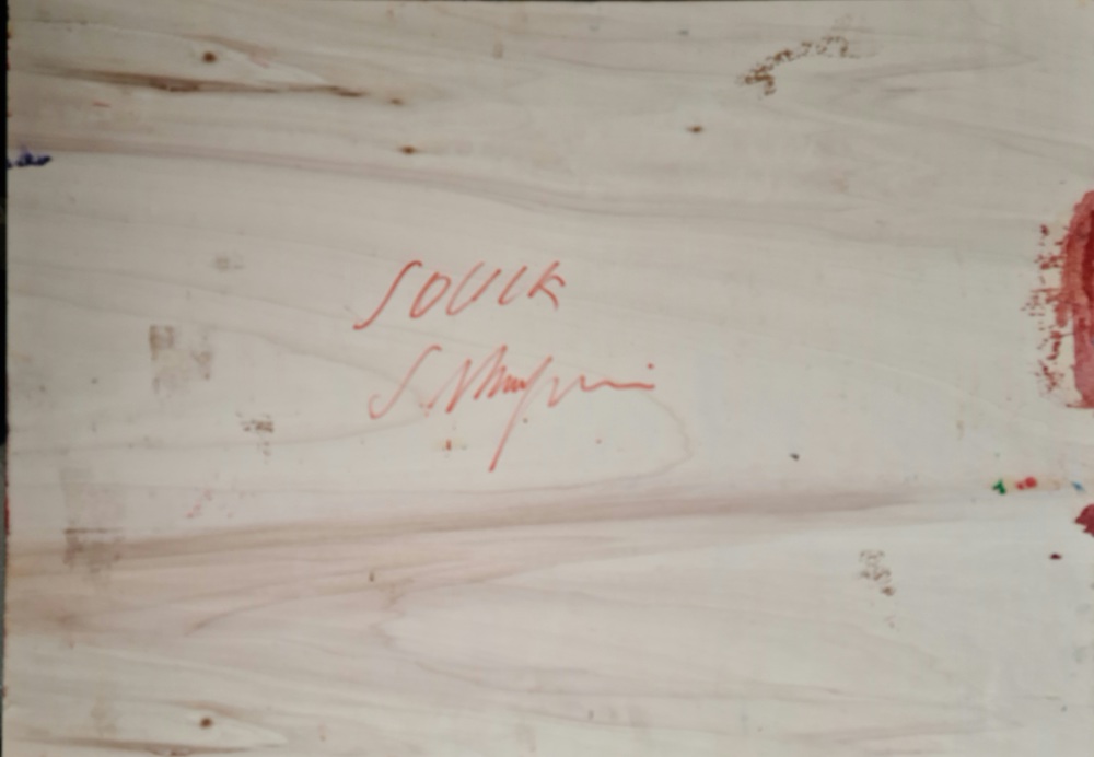 Olio su tavola 50x70 cm; firma in basso a destra, firma e titolo al retro.