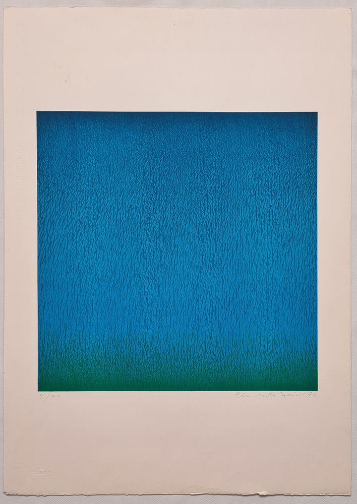 Litografia 50x70 cm; firma e anno in basso a destra, tiratura in basso a sinistra 5/76.