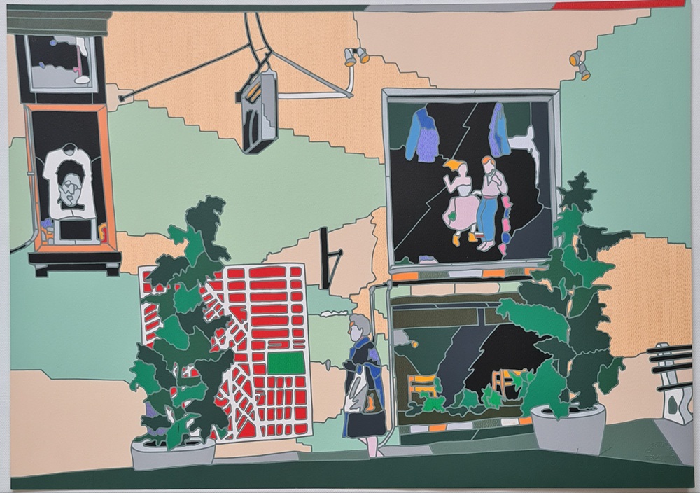 Serigrafia 69x49 cm; firma in basso al centrotiratura in basso a sinistra 106/150. Timbro a secco stampatore Dialoghi Club di Biella.