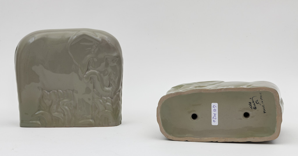 Maiolica formata a stampo e smaltata in grigio lucido.