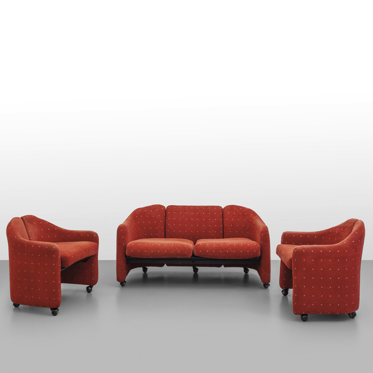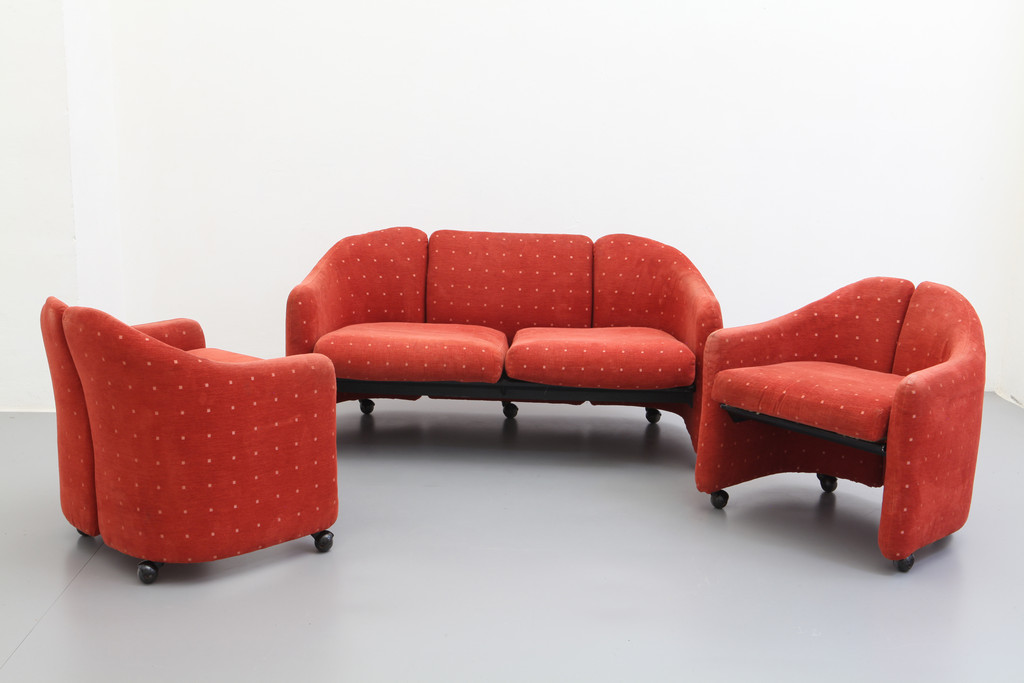 Due poltroncine 'PS142' e un divano a due posti 'D142A' della serie 'Clamis' per TECNO 1969.