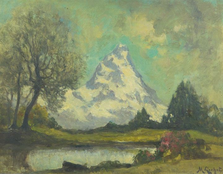 GACHET MARIO Torino 1879 - 1981 "Il Cervino" 35x45 olio su cartoncino Opera...