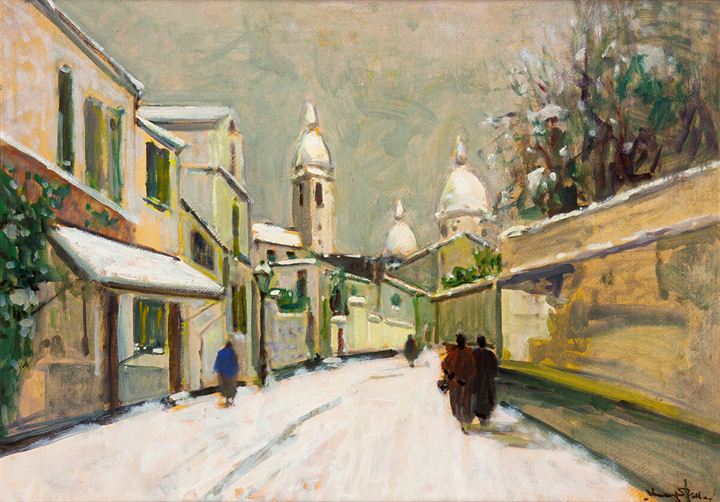 ZOLLA VENANZIO GB 1880 - 1961 Torino "Strada di città innevata" 50x70 olio su...