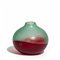 Un vaso a incalmo in vetro velato rosso e verdognolo molato a nido d'ape circa 1980.