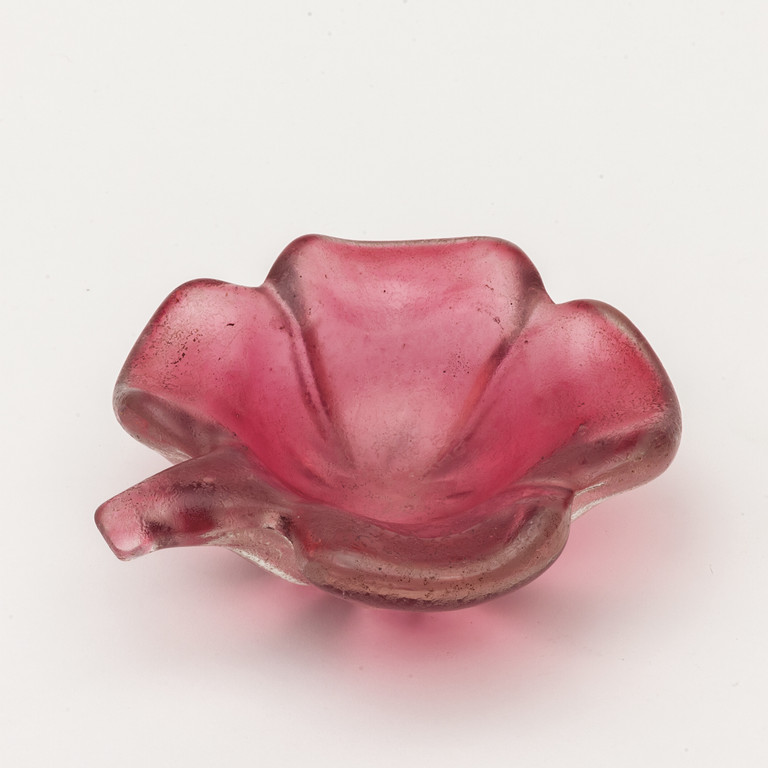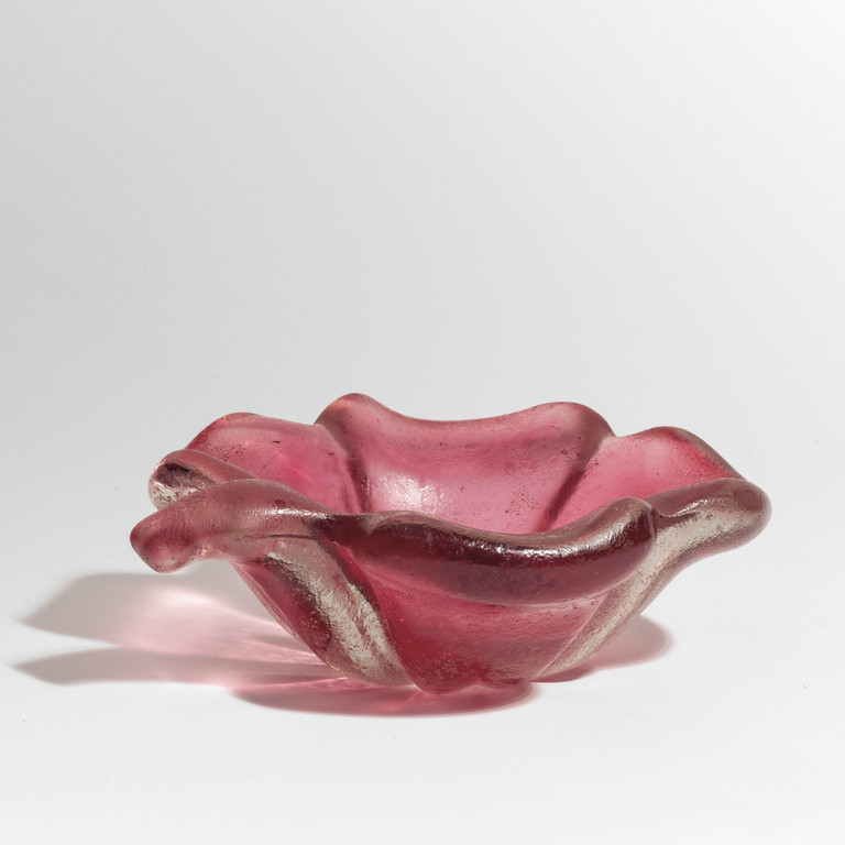 Una coppa a quadrifoglio in vetro rubino corroso anni '30.
