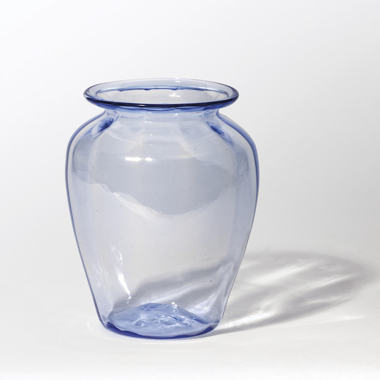 Un vaso costolato in vetro trasparente bluino circa 1925.