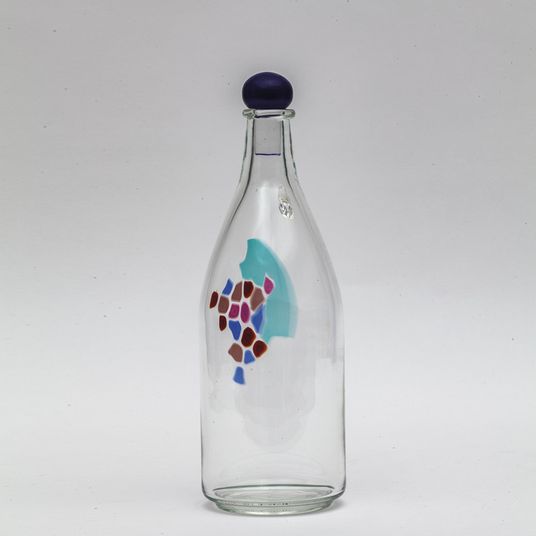 Una bottiglia in cristallo con murrina a grappolo 1984.